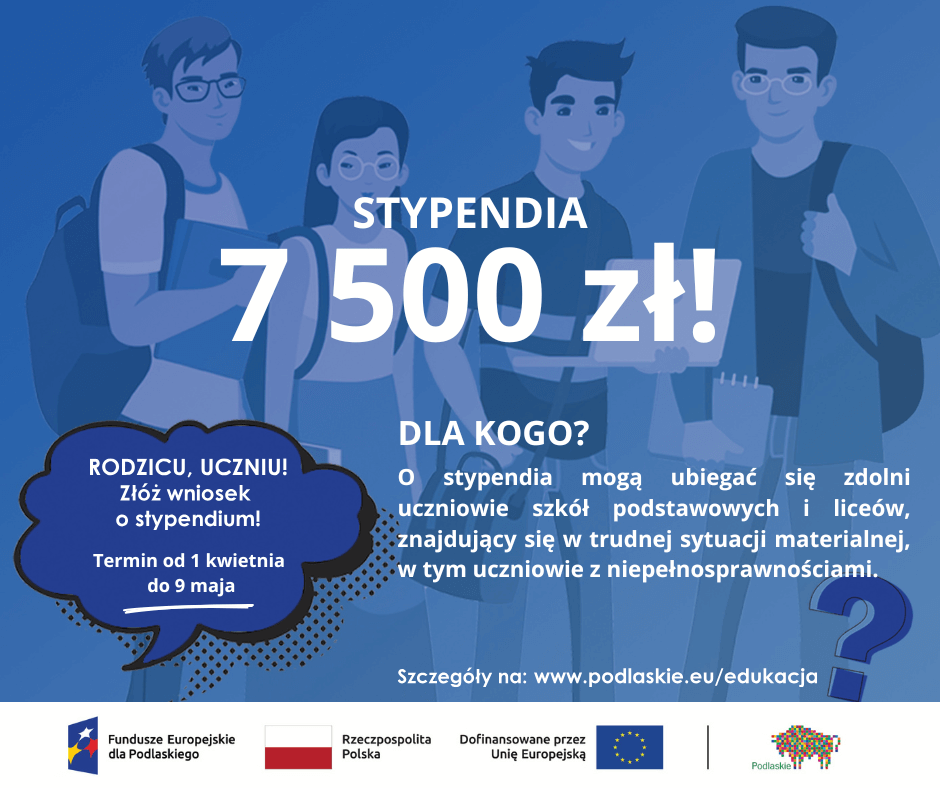 Młodzi, ambitni uczniowie z województwa podlaskiego ponownie mają szansę na wsparcie finansowe! 1 kwietnia rozpoczyna się II edycja „Podlaskiego programu wsparcia stypendialnego uczniów/uczennic szkół i placówek systemu oświaty prowadzących kształcenie ogólne”.