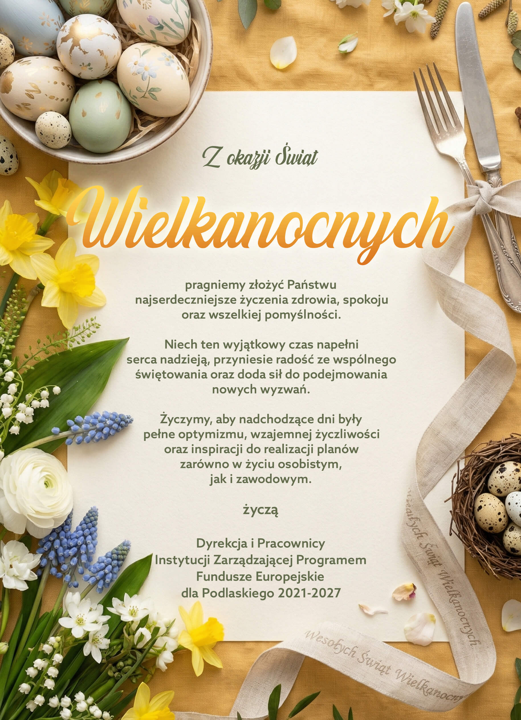 Życzą Dyrekcja i Pracownicy Instytucji Zarządzającej Programem Fundusze Europejskie dla Podlaskiego 2021-2027